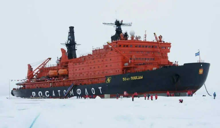 «50 лет Победы» — ледокол с характером. Это атомный корабль предыдущего поколения, который прославился своими арктическими экспедициями и рекордными рейсами. Он был и остаётся заметной фигурой в истории полярного судостроения: у него были уникальные операции, и он служит примером практической надёжности.